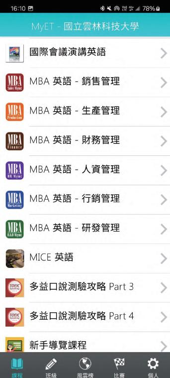 理念:針對雲科的學生經常在用的英文APP程式修改介面,希望增加雲科學生在使用 優化前:介面不熟悉難以操作、課程分類雜亂、icon顏色過於複雜等問題進行優化。