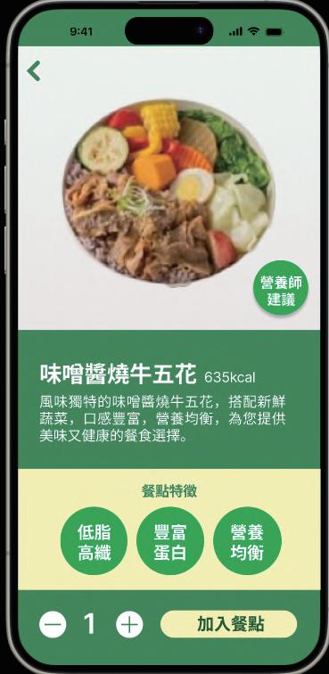 優點:針對個人飲食習慣制定計畫,提供多種選擇,並結合專業營養師建議,確保飲食安全與健康。