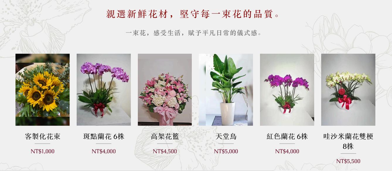 精美的商品照、圖⽂介紹(花語、冷知識)、顧客分享商品