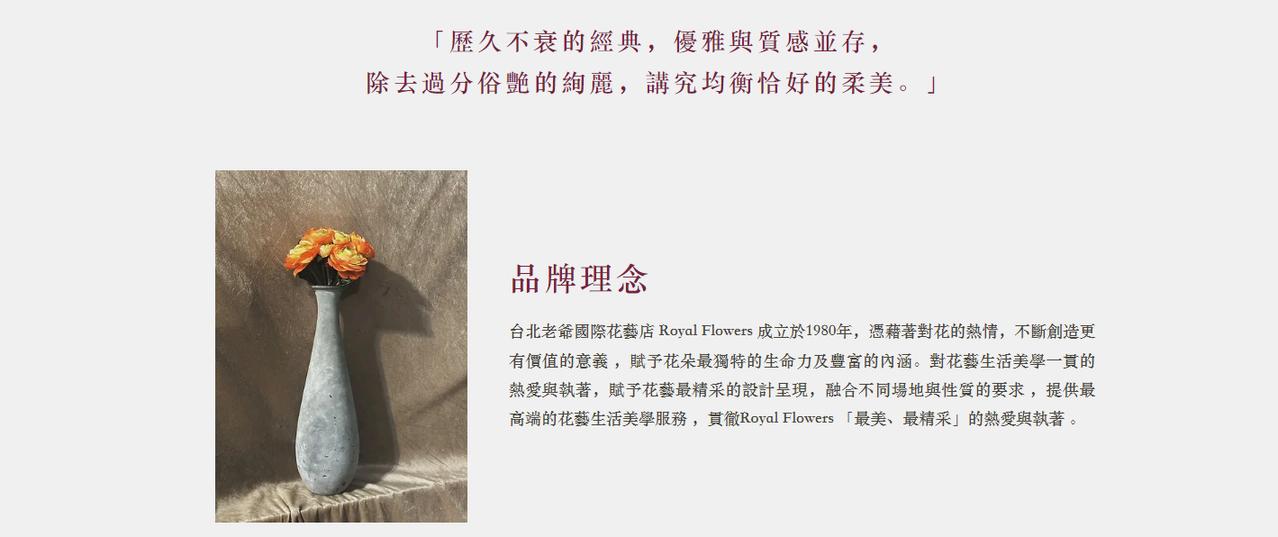對⽣活學⼀貫的執賦予采的設計現融合不同場性質的求提供⾼ 端的⽣活學服貫RoyalFlowers「采」的執