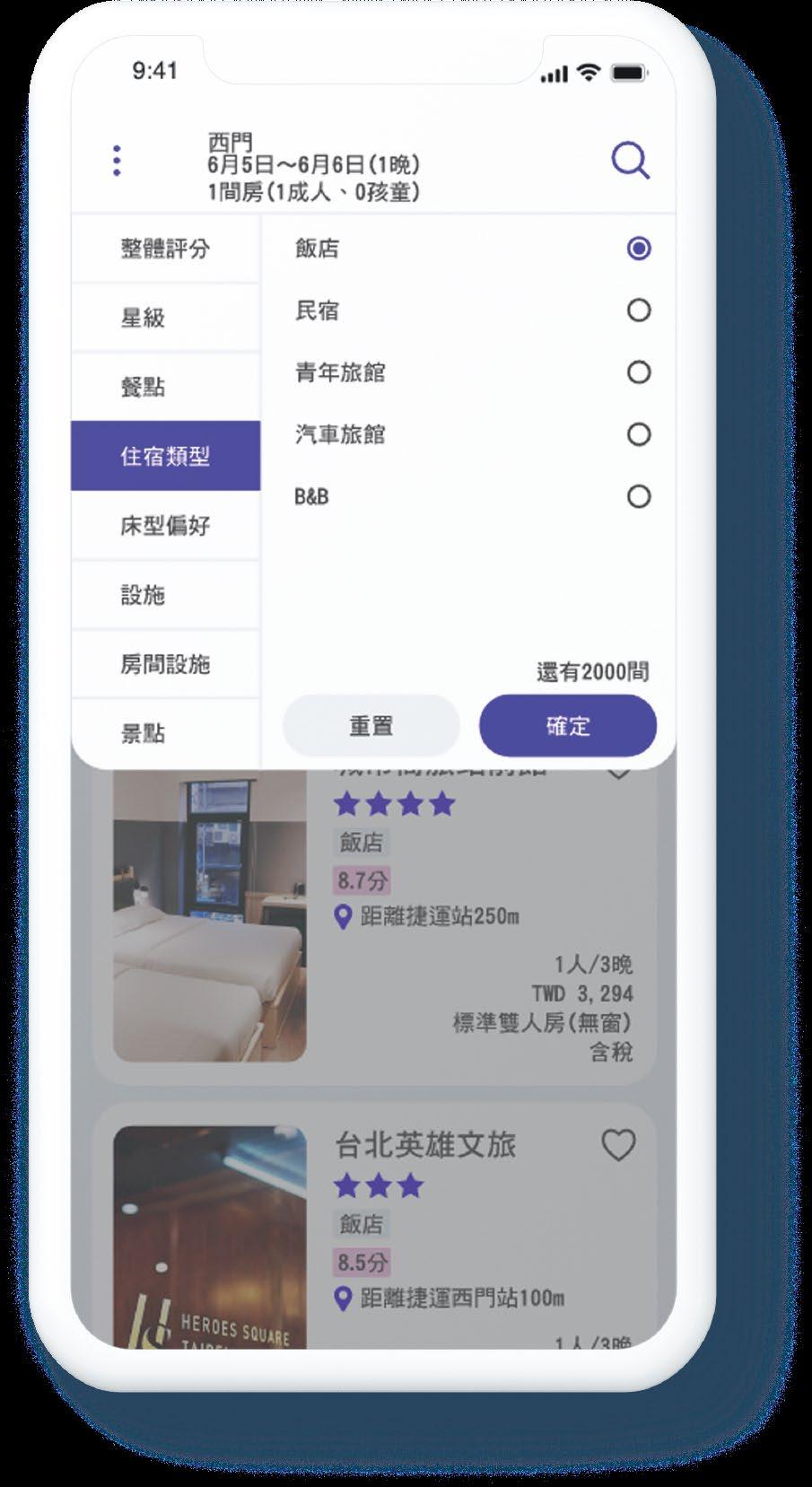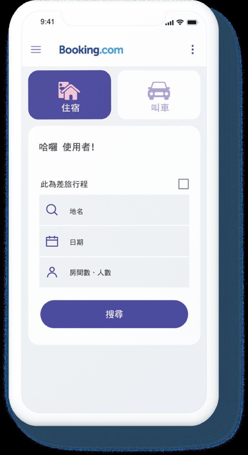 地點、日期及人數地點、人數、日期等 訂房資訊一次輸入,使用者不用反覆回到首頁。 訂房資訊輸入
