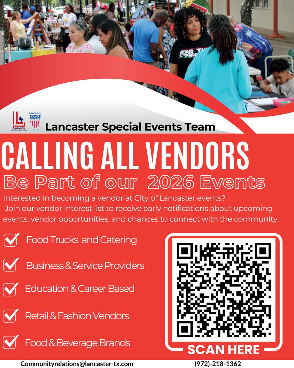 For more information or to sign up, call us at 972-218-1360 or email us at communityrelations@lancastertx.com.