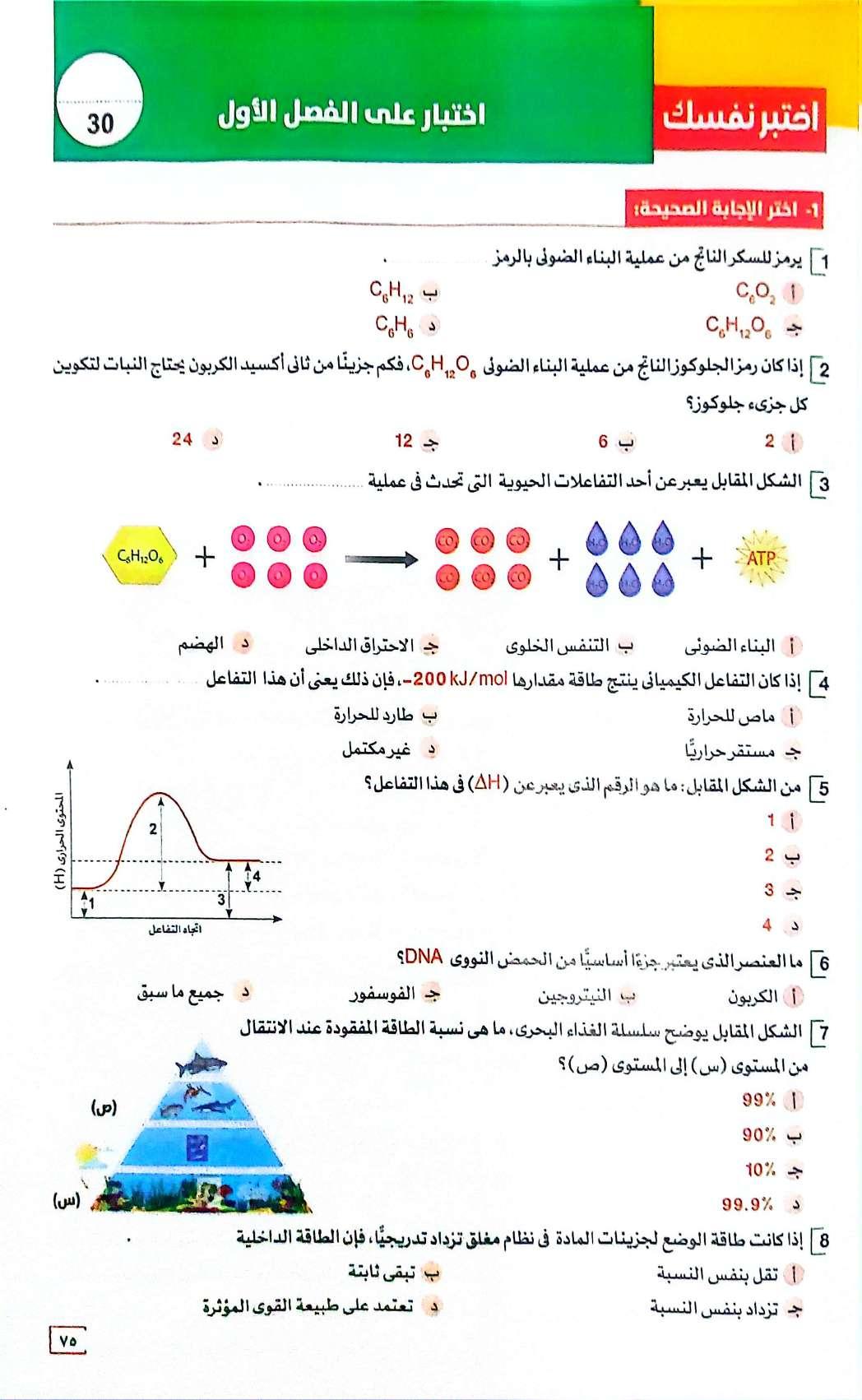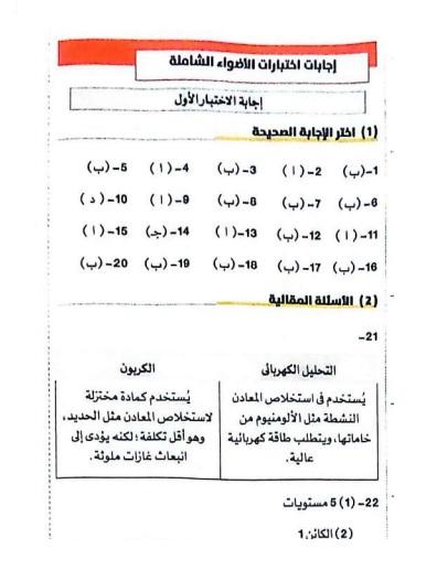 كتاب الاضواء علوم متكاملة اختبار شامل على الفصل الأول بالإجابات اولى ثانوي الترم الثاني 2025 ، كتاب