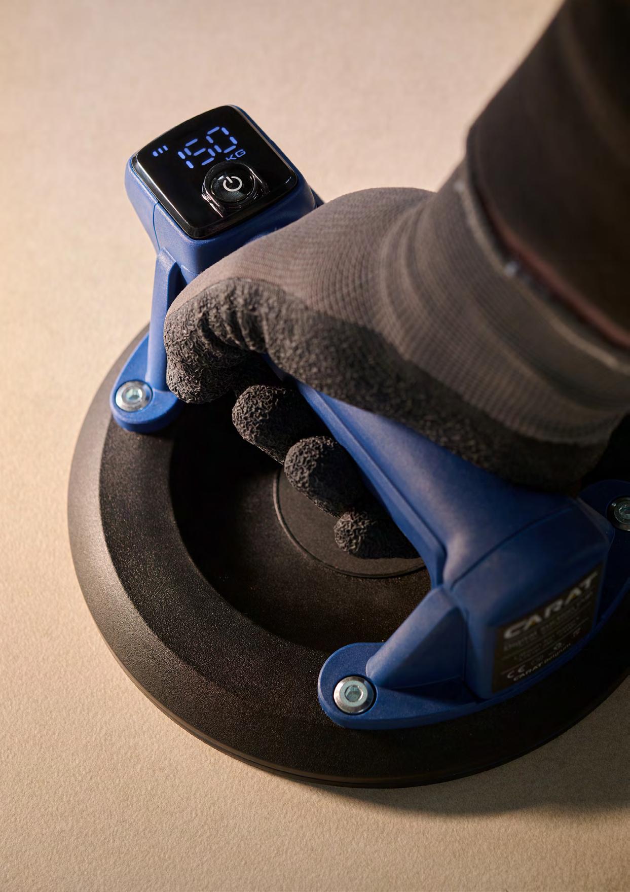 Tehoa ja hallintaa. Carat laattaimukupilla siirrät raskaat, liukkaat tai kuvioidut laatat ja (lasi)levyt vaivatta – kantokyky 150 kg pystysuunnassa ja 130 kg vaakasuunnassa ilman otteen lipsumista. Täydellinen suurikokoisille keramiikkalaatoille tai lasille.