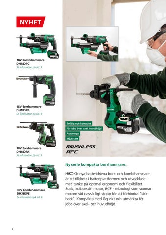 HiKOKIs nya batteridrivna borr- och kombihammare är ett tillskott i batteriplattformen och utvecklade med tanke på optimal ergonomi och flexibilitet. Stark, kolborstfri motor, RCF - teknologi som stannar motorn vid oavsiktligt stopp för att förhindra "kickback". Kompakta med låg vikt och utmärkta för jobb över axel- och huvudhöjd.