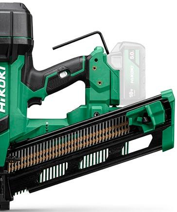 HiKOKIs første batteridrevne coil pappspikerpistol med Air Spring Drive System – For spikring av papp og shingel uten problemer med slanger og kompressorer - Skyter pappspiker fra 25 til 45 mm lengde.