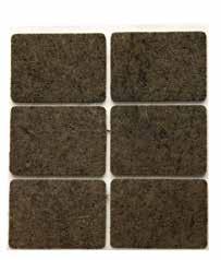 MFT Møbelfilt er firkantet og selvklebende. Finnes i hvit og brun i 3 forskjellige størrelser. Se tabeller under.
