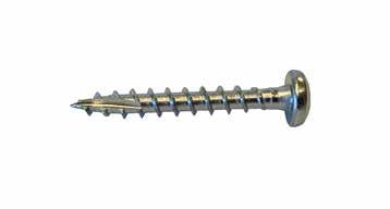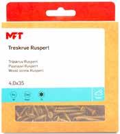 MFT Treskrue med panhode har en elektrolytisk overflatebehandling og er produsert av herdet karbonstål, AISI-1022. Korrosjonsklasse C1. Skruen er vokset for lavere innskruingsmoment. Skruspissen har et fiberskjær som reduserer faren av sprekkdannelse ved montering. TX bitsfeste for optimalt grep mellom bits og skrue. Skruer opp til 40mm er helgjenget og resterende lengder delgjenget. For innendørs bruk.