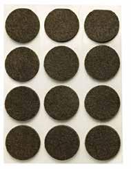 MFT Møbelfilt er rund og selvklebende. Finnes i hvit og brun i fire forskjellige størrelser. Se tabeller under.