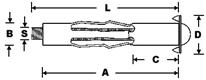 Total lengde: 25,2mm/22,2mm. Øyet innvendig: 5,1mm. Tråd diam.: 1,9mm. Gjengelengde: 9,0mm/7,0mm