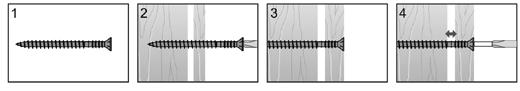 I stål: Skruen bør gå gjennom stålet med minst 5 mm