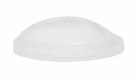 Dørdemper er produsert i transparent plast. Dørdemperen er linseformet og har en flat selvklebende overflate.