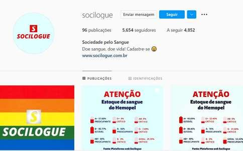 Nas redes sociais, eu esclareço todas as dúvidas sobre o projeto de doação de sangue, no ponto de vista técnico e do ponto de vista jurídico, além de trazer curiosidade, o estoque de sangue atualizando, além de outros conteúdos.