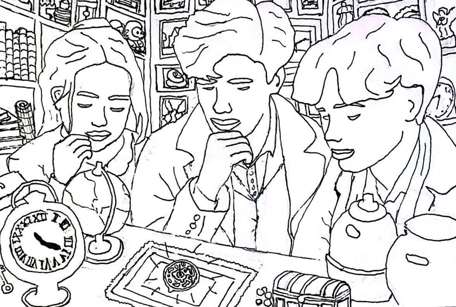 The dry, dusty fragrance of old paper and polished wood made the air perfumed as mysterious labeled shelves full of curious things invited them nearer. During this menagerie, Lily, Max, and Alex get their attention drawn to a shiny pocket watch with its golden face glittering in the lamplight.