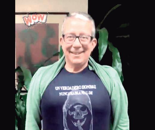 puede observar a Jenaro Villamil, presidente del Sistema Público de Radiodifusión del Estado Mexicano, quitándose un suéter, para dejar ver una playera negra con un grabado de la “Santa Muerte” con unos huesudos dedos sobre sus descarnados labios, indicando silencio, acompañada de la leyenda “Un verdadero hombre, no habla mal de López Obrador” y se escucha decir muy satisfecho “El día de hoy quería estrenar mi nuevo suéter, pero hace calor, y la verdad es que un verdadero hombre debería tener siempre esta playera” esto para en buen entendedor, es un amenaza de muerte de parte del crimen orga-