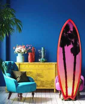 One of Bobbi’s most innovative ventures emerged from her time curating Gallery Montecito. Tasked with creating a playful concept for a hotel installation, she decided to combine her art with a quintessential Californian symbol: the surfboard. Using a vintage Channel Islands surfboard, she applied her “Sexy Palm” photograph using a specialized resin-coating technique. The result was a stunning, glass-like piece that quickly caught the attention of collectors.