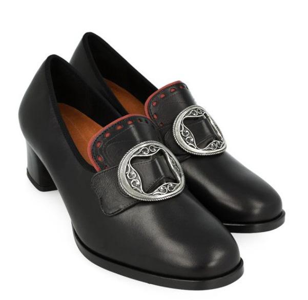 Husk å prøve skoene med strømpene som hører til. Bunadskoen «Britt» lages i kalveskinn fra størrelse 2,5 (35) til 8 (42). Produseres med og uten røde detaljer på Klaveness' egen fabrikk i Portugal (kr 1900).
