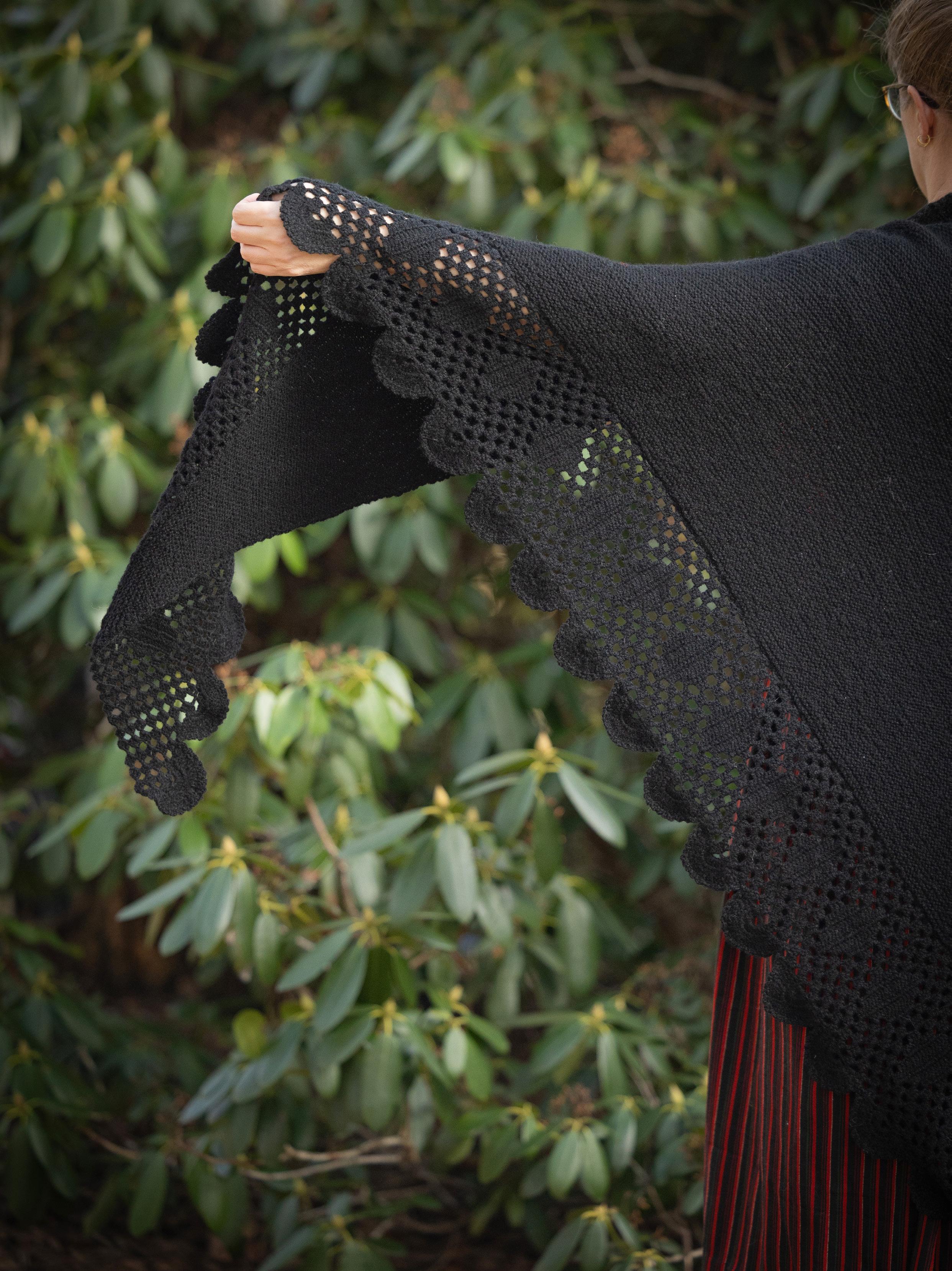 Bondeturkle passer både til hverdag og fest. En heklet blonde pynter opp det rillestrikkede sjalet, som har sine røtter i Gudbrandsdalen.