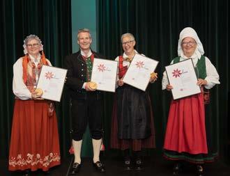 Norges Husflidslags fortjenestemedalje utdelt under landsmøtet 2022. Fra venstre: Eva S. Wold, Øyvind Myhr, Kjærsti Gangsø, Kathrine Bringsdal. Foto: Ola Dybendal
