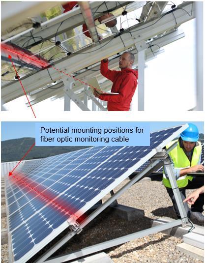 • Fully distributed coverage. With measurement points every 1m along the full length of the cable every panel within the installation can be safely monitored by the fiber optic sensing cable.