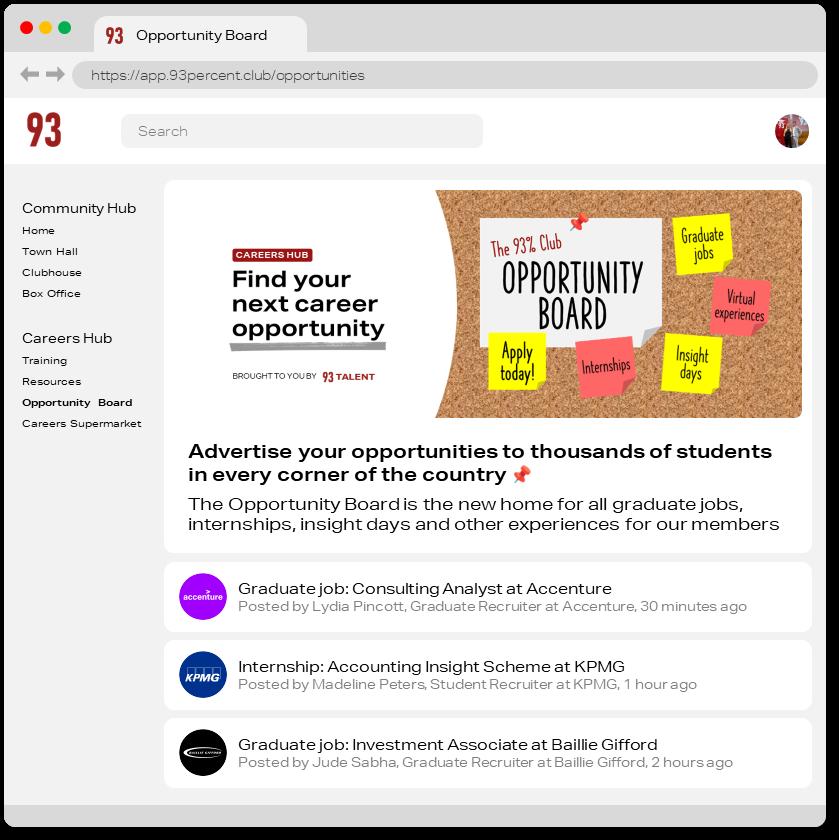 In our Virtual Clubhouse, thousands of students share advice and connect with recruiters at top firms. Our employer partners can also host calls and post roles in our Careers Supermarket.