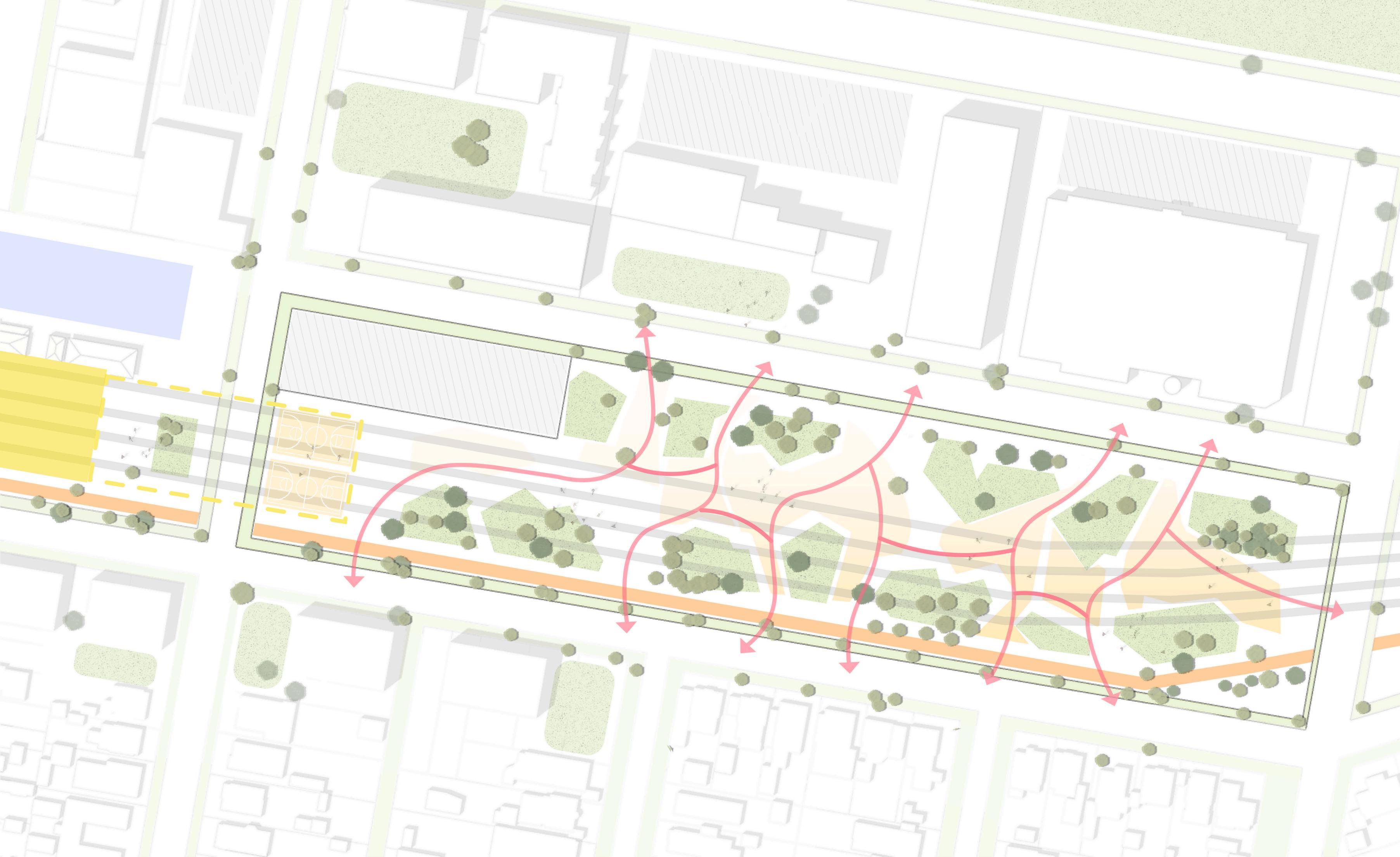 1.Improvedpedestrianconnectivitybyelevatingthetracksandutilizingthespaceunderneaththespaceasa publicpark.