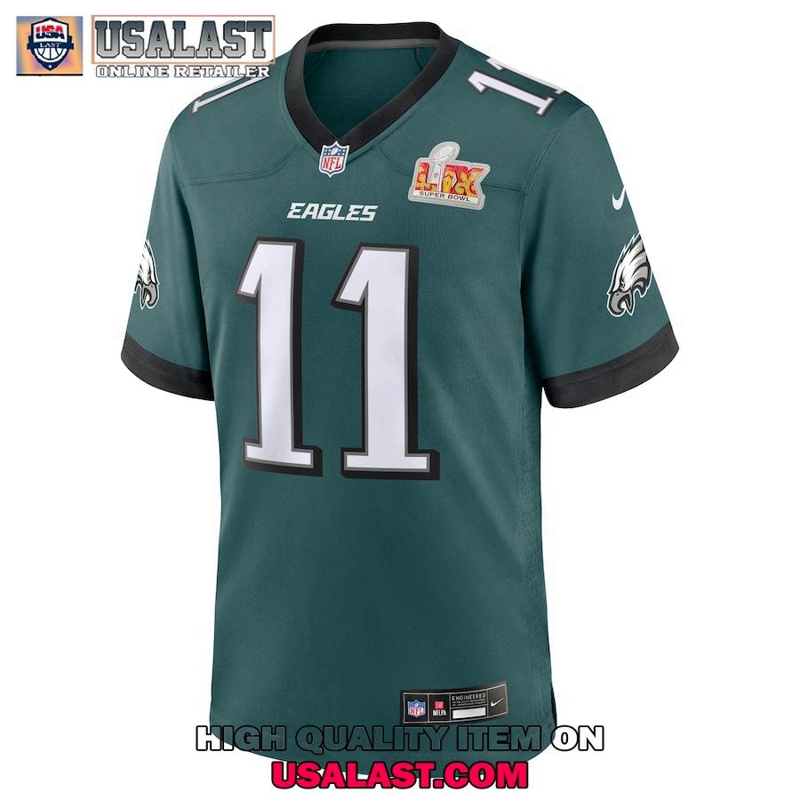 PRODUCTINFORMATION:A.J.BrownMidnightGreenPhiladelphiaEaglesSuper BowlLIXGameFootballJersey