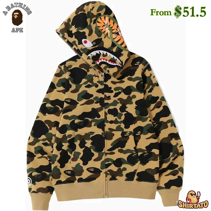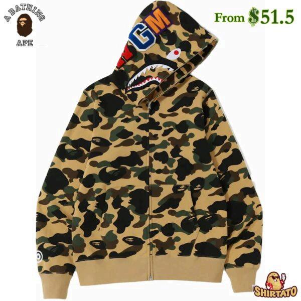 BAPE1stCamoSharkYellowStyleFullZipUpHoodie