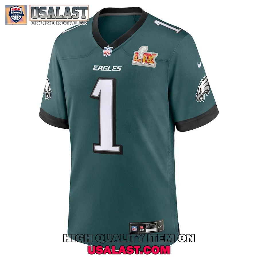 PRODUCTINFORMATION:JalenHurtsMidnightGreenPhiladelphiaEaglesSuper BowlLIXGameFootballJersey