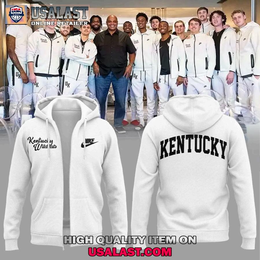 Kentucky Wildcats Basketball White Zipper Hoodie Set