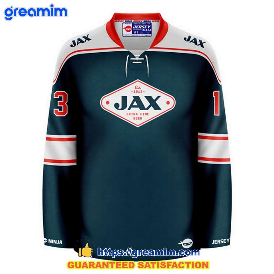 KEY FEATURES : Personalized Jax Beer Primary Ocean Blue Hockey Jersey