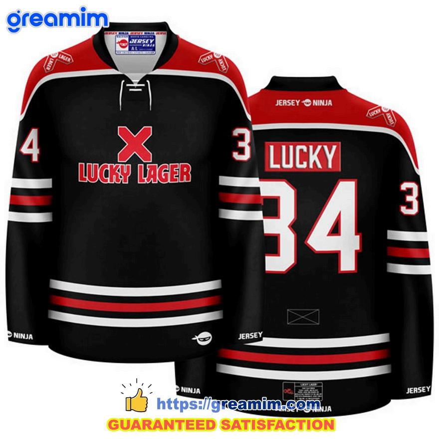 KEY FEATURES : Personalized Lucky Lager Alternate Black Hockey Jersey