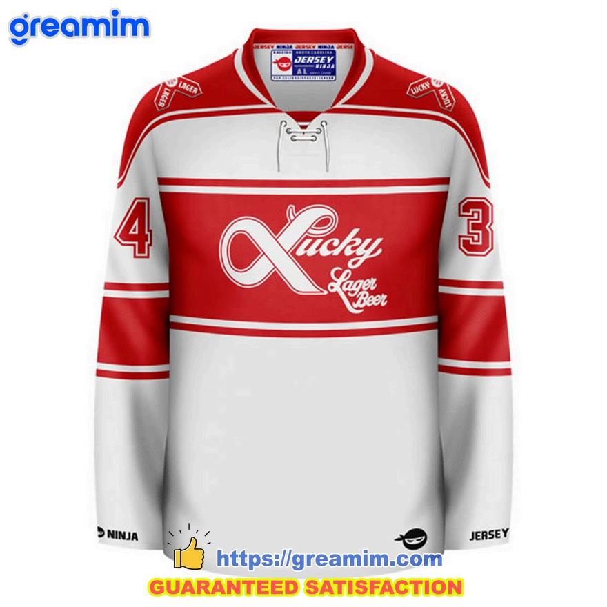 KEY FEATURES : Personalized Lucky Lager Primary Whiteout Hockey Jersey