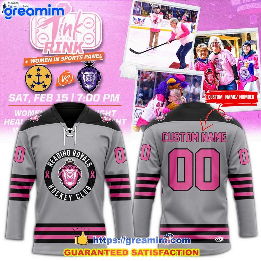 Personalized Reading Royals Pink in the Rink Hockey Jersey