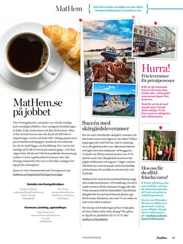 Spana in våra rekommenderade företagsvaror på: mathem.se/inspiration/foretag-foreningar Kontakta våra företagsförsäljare: Malena Gullberg malena.gullberg@mathem.se Södra Sverige 0733038236