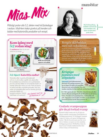 5:2-tipset: Kalorifria nudlar! Shiratakinudlar är gjorda på konjaksmjöl och ser ut och smakar ungefär som glasnudlar. De innehåller bara 10 kalorier och 3 g kolhydrater per 100 g. De kan sköljas av och användas direkt i en asiatisk sallad eller varma i en wok. Testa att blanda en sallad med räkor, strimlade grönsaker, chili, koriander och shiratakinudlar med en dressing gjord på sesamolja, fisksås och hackade jordnötter. Fräscht, snabblagat och supergott!