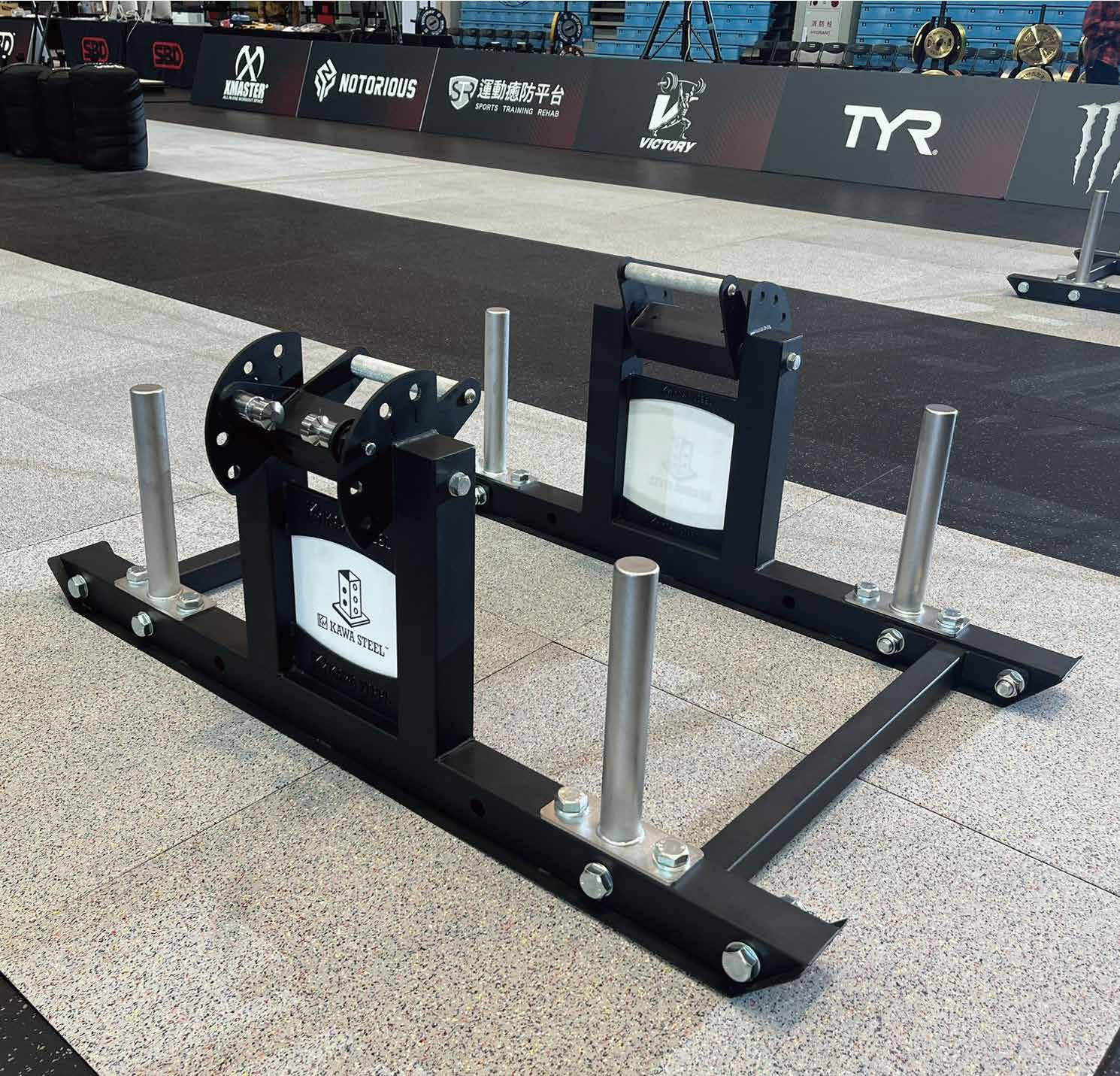 為了台灣大力士比賽所設計,除了要考慮結構是否穩 固外,木板須平整光滑,鐵件的運用也需要避免運動 員使用時受傷。