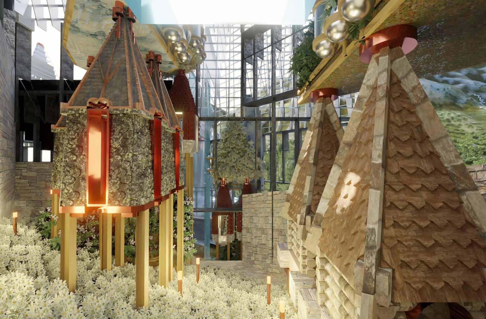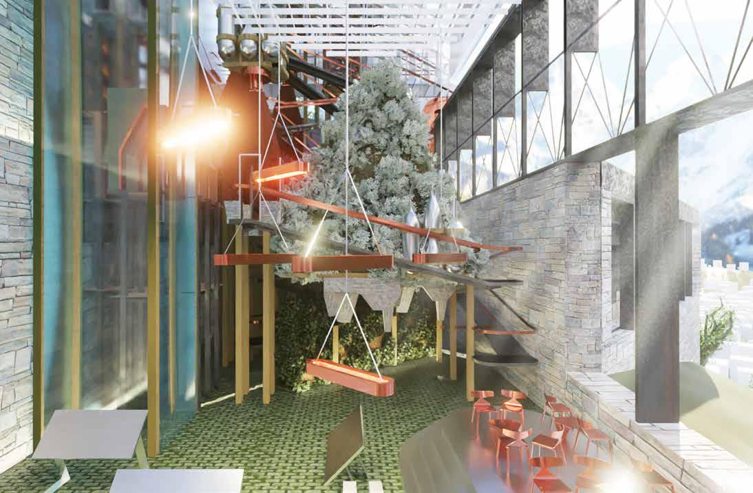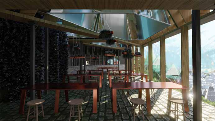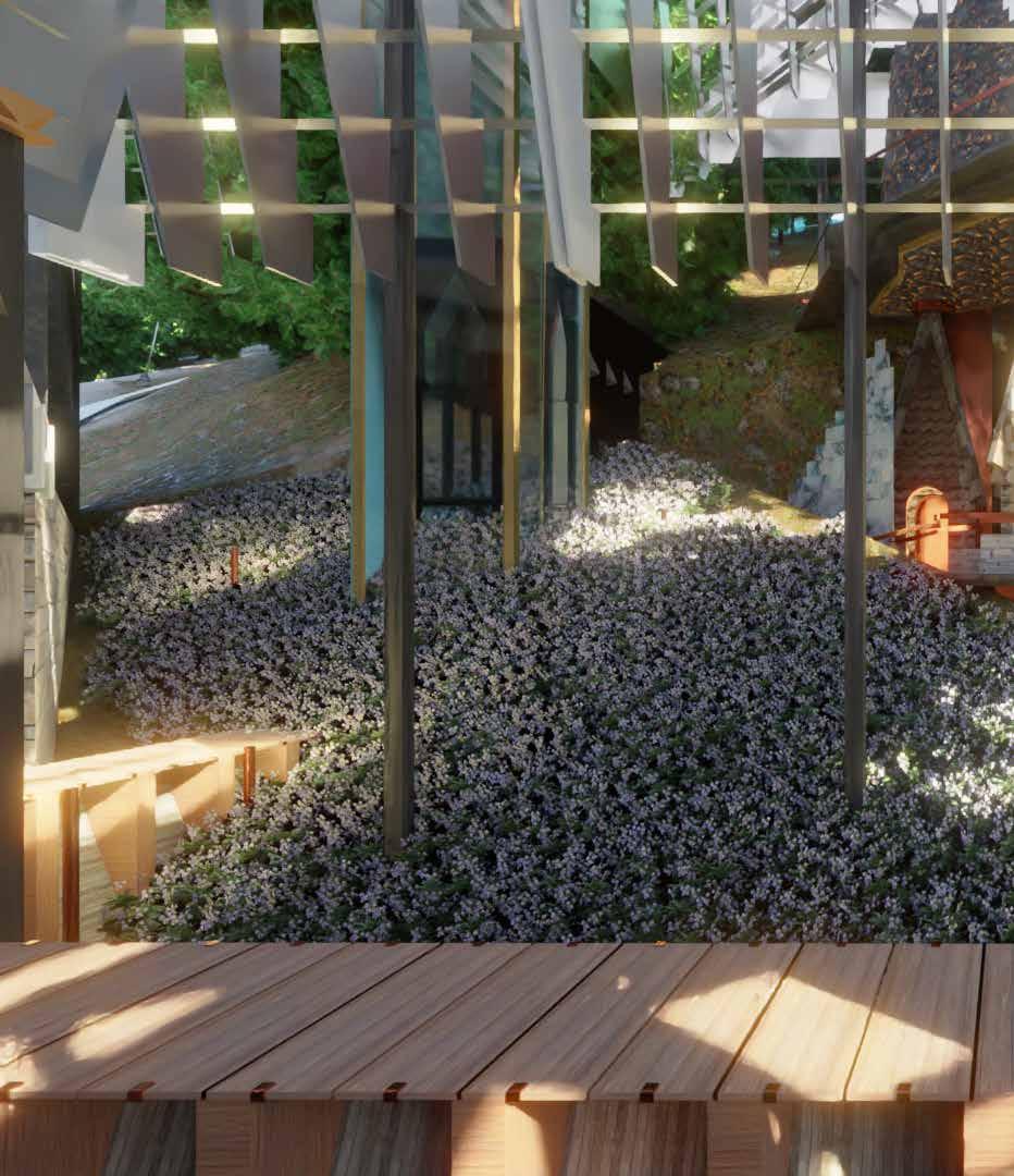 Based on the scientific research, the vegetation could be replaced by tropical plants or the species that can grow in the higher temperature environment., thus, it can be argued that the green house will stand as an ecological museum containing disappeared authentic landscape and climate of Zermatt.The project provides key essential programmes for botanic project and focuses on the intimacy in between the conserved alpine plants and visitors. The composition and curation of each cultivation beds are aiming to provide a world that people can immerse and surrounded by the delicacy of alpine rarities. The greenhouse serves as an architectural scale capsule containing authentic alpine climate and allows the delicacy of alpine plants to colonise over the tourist area of Zermatt and become a crystal city that replace the existing resort landscape.
