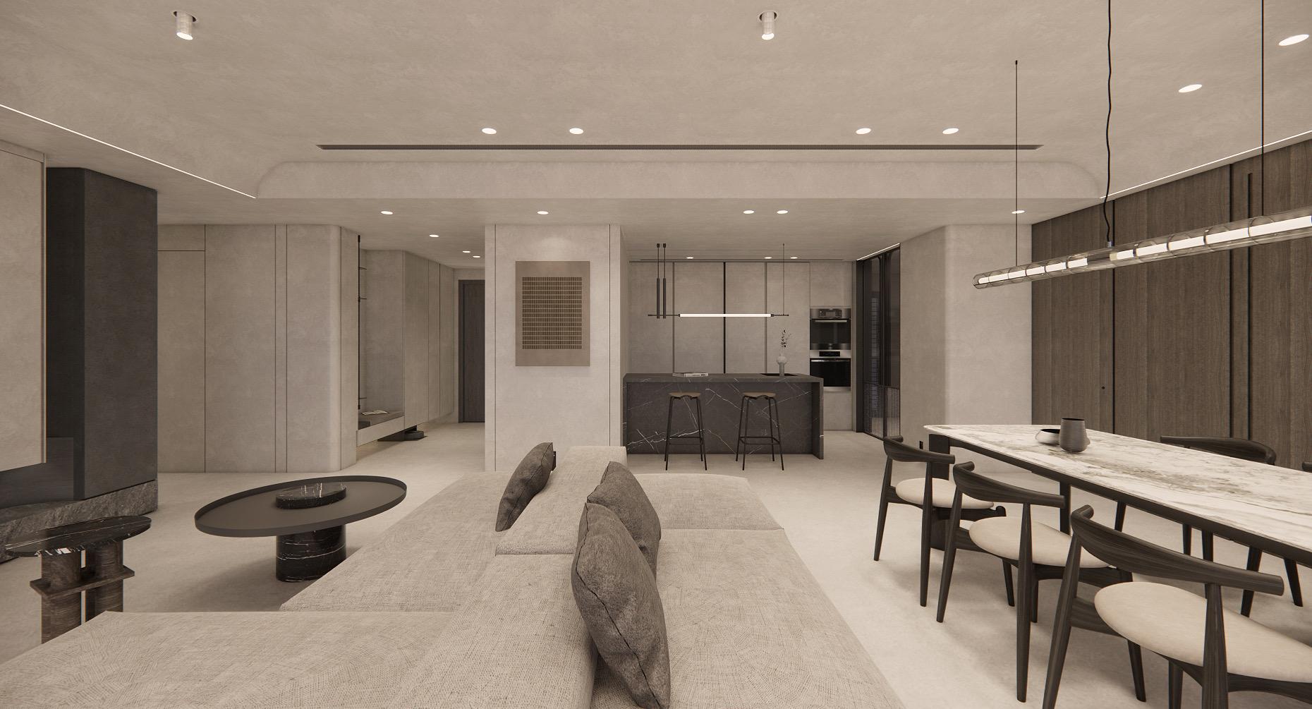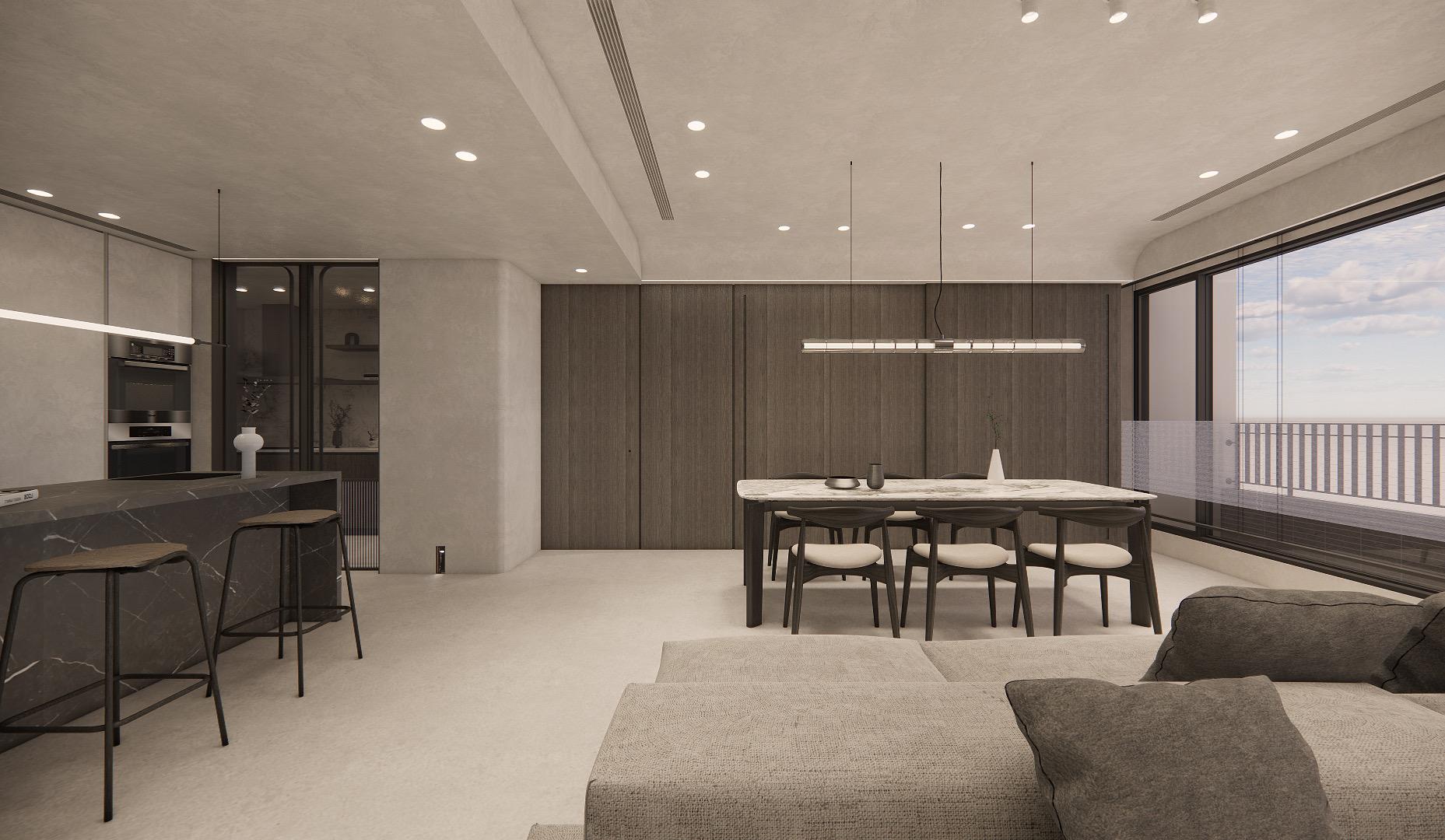 拆除原有廚房隔間,利用中島與餐桌延伸廚房機能, 拓寬整體公共空間,讓自然採光延伸於整體空間。