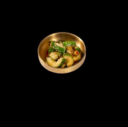 Mit KimChi Reis, Spinat, Karotten, gurken, eingelegtem Rettich, Sesam, serviert mit Gochujang Bohnen Mayonnaise und Tempura Flakes