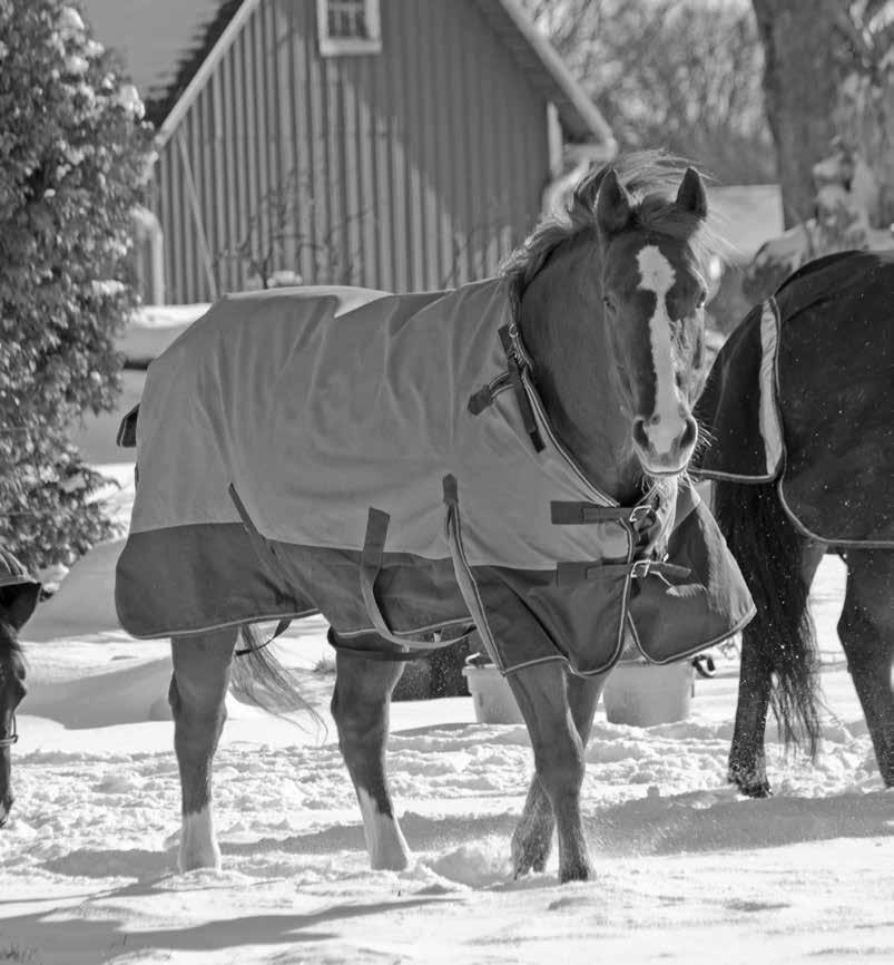 Cold weather increases your horse’s caloric needs, especially if they are exposed to the elements. Ideally, your horse should be wellconditioned going into the winter. Consider boosting forage, as hay helps generate body heat during digestion. Ensure your horse has access to fresh, unfrozen water at all times to prevent dehydration, which is surprisingly common in winter. Some owners also add vitamin and mineral supplements to support immunity and joint health during the colder months.