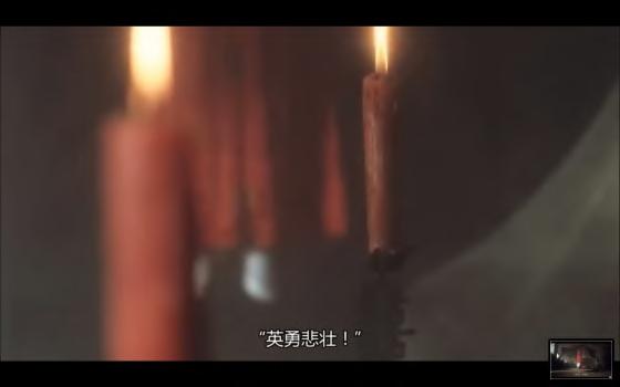 While the architectural skeleton of the opera house remains largely similar, the Mise-en-scène makes the historical changes readily visually comprehensible. In comparably more peaceful times while the film first started - 1925, a time of warlords' rule and the heyday of the Peking Opera, the flags hanging from the second-floor wooden railings often imprint names and praises of the opera performers. As China swirls into the later historical turmoil from the Japanese invasion, the takeover by the Nationalist party and the inexorable rise of the Communist Party(Fig. 15, 16, 17), the worship of individuals certainly had to give way to that of the collective power struggle. Regardless of the group in control, hanging of the national/party flag seemed to be a common way of exerting dominance in the space which itself embodied a dual function of public gathering and power display, with the opera art having both royalist and bourgeois origin and grassroots popularity. The resurgence of similar scenes also elevates the notion of the past as a vicious cycle or a wanton process under the mercy of the supervising regime(Ma, 2003).
