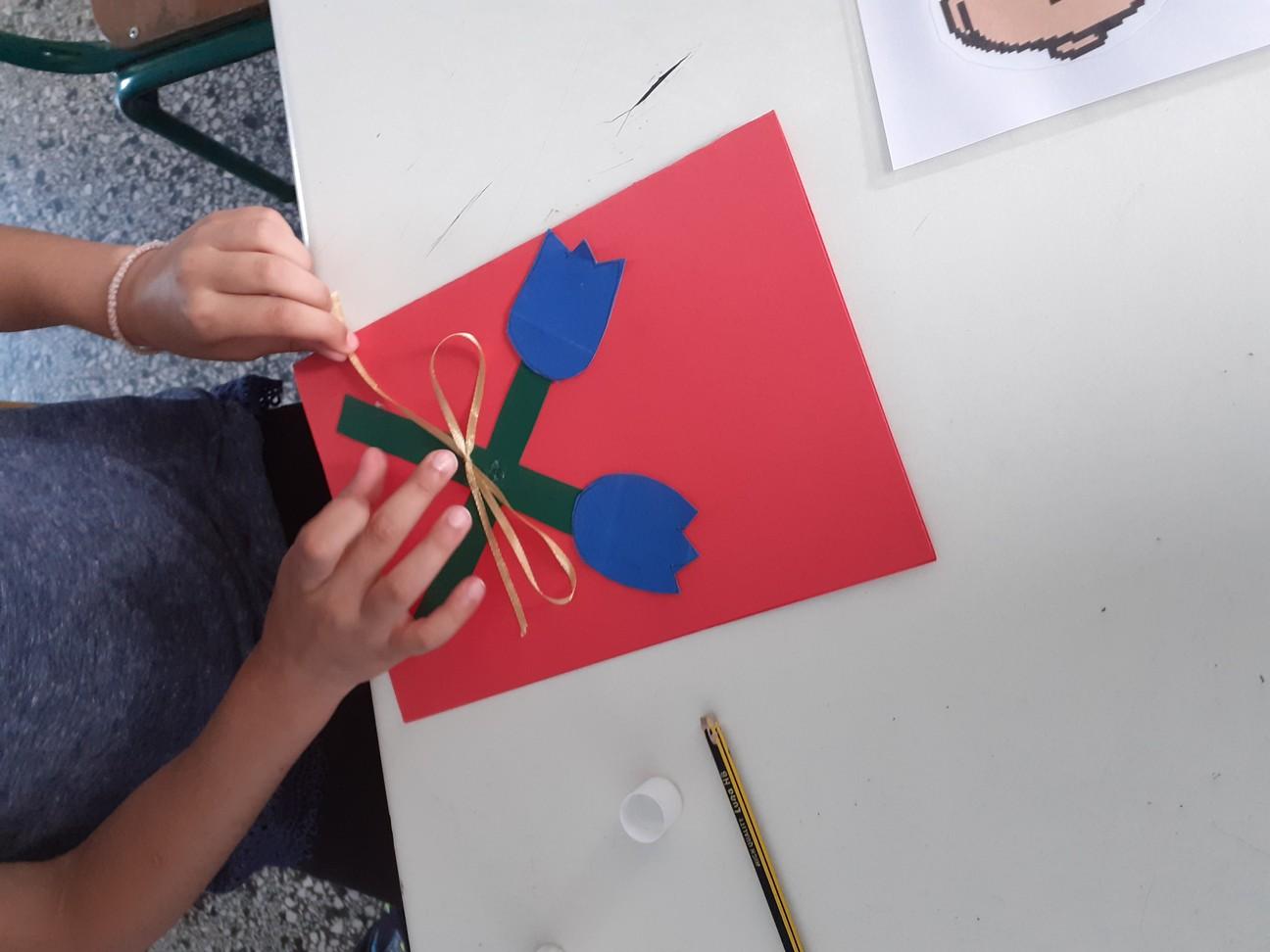 Ανοιξιάτικες χειροτεχνίες Οι μαθήτριες κι οι μαθητές της Γ΄ τάξης έφτιαξαν πολύχρωμες κάρτες με τουλίπες για τη γιορτή της μητέρας και ένα πρωτομαγιάτικο στεφάνι.