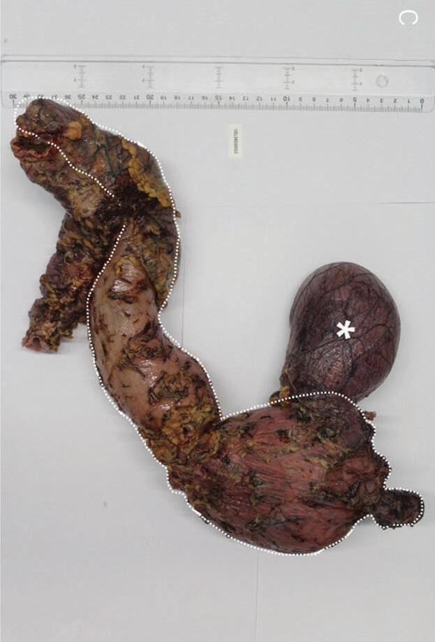 and other parts of the bowel in a 59-year-old patient with gastroparesis and a history of multiple hardware infections with device exchanges.