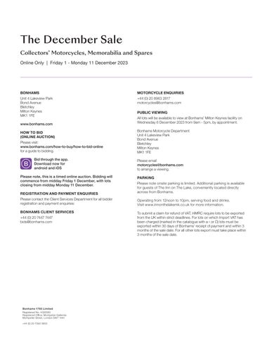 MOTORCYCLE ENQUIRIES +44 (0) 20 8963 2817 motorcycles@bonhams.com PUBLIC VIEWING