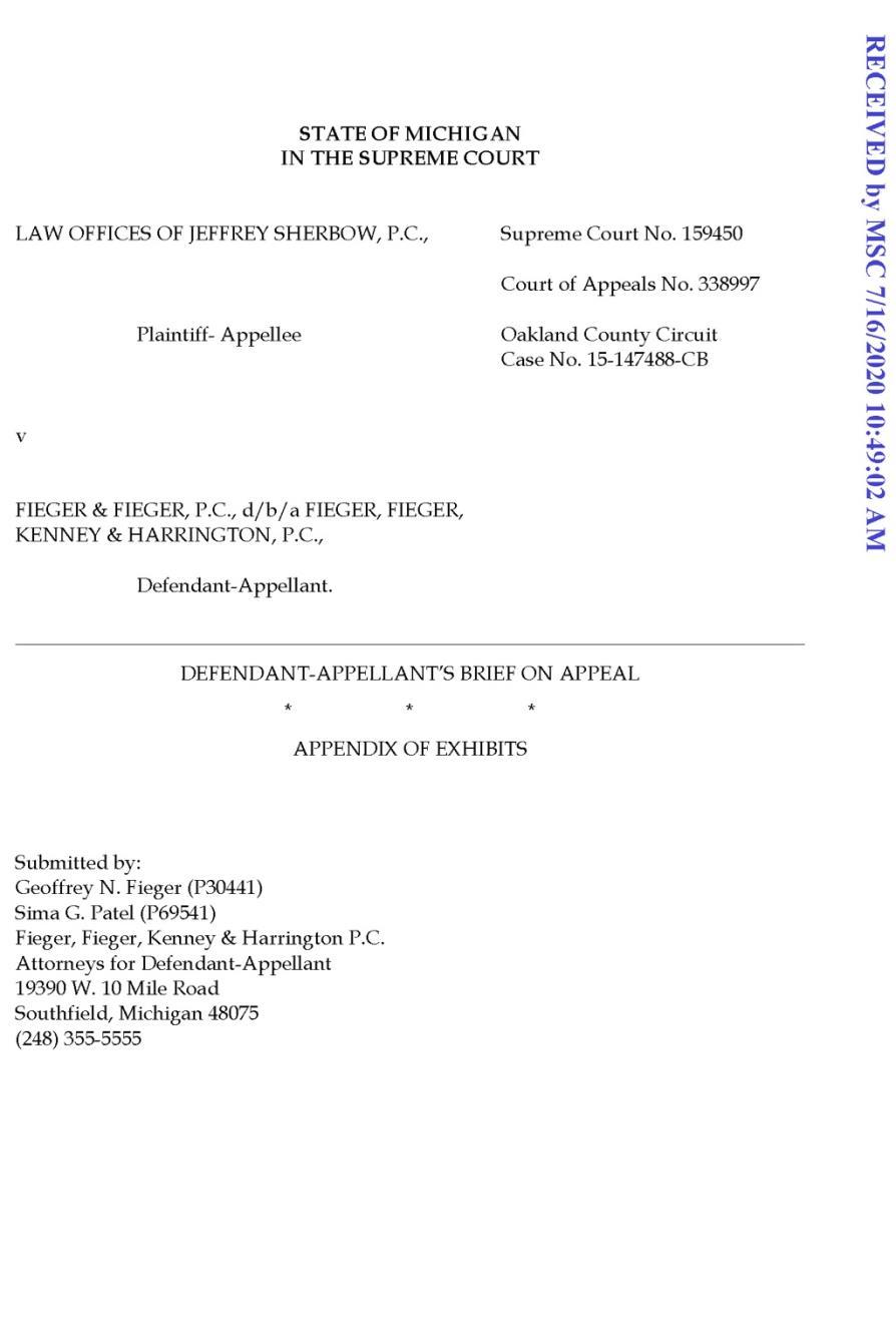 Law Offices of Jeffery Sherbow, P.C. v. Fieger & Fieger, P.C. Hon. Sima Patel