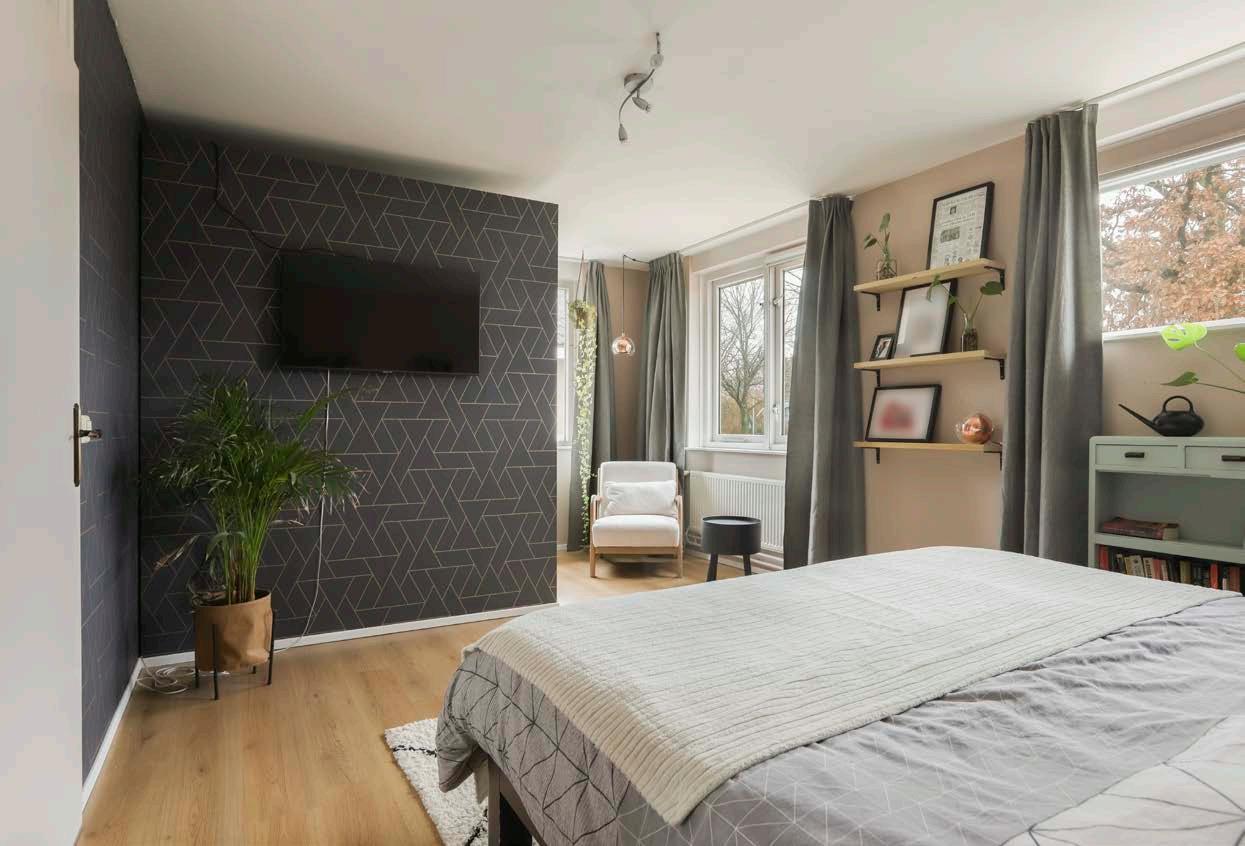 De masterbedroom is keurig afgewerkt met een laminaatvloer en stucwerk op de wanden en is voorzien van een inloopkast. De overige 2 slaapkamers zijn voorzien van vloerbedekking en stucwerk op de wanden.