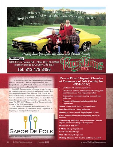 Status: A non-profit 501 (c) (6) organization Location: Different county businesses Meetings: Once-a-month, beginning Feb. 3, 2012 Cost: Membership fee varies depending on size of business Anniversary Special: A one-year bronze $5 membership for businesses with up to 6 employees Phone: (863) 838-2084 E-Mail: prhccpc@gmail.com Facebook: Ana Prhccpc Web site: www.prhccpc.com