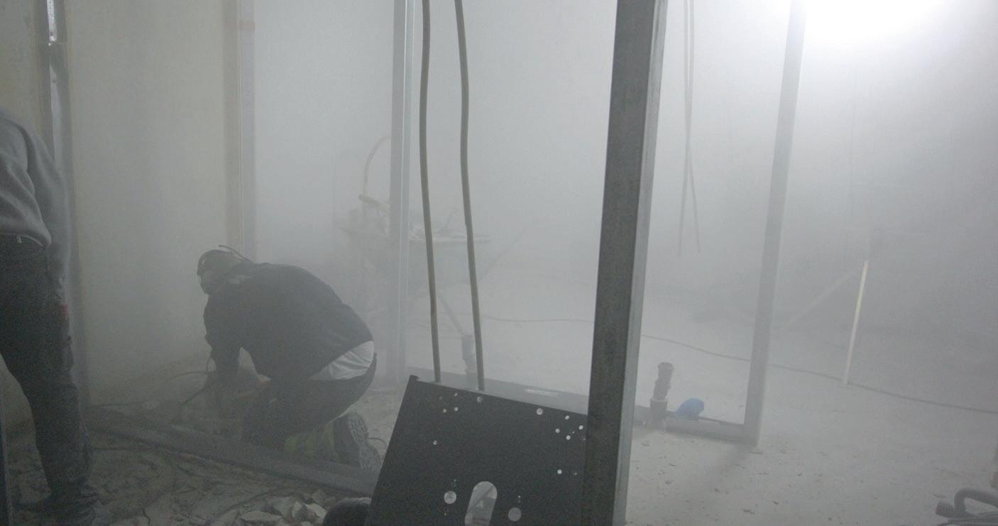 Extremely dusty air after drilling and cutting in a concrete floor.