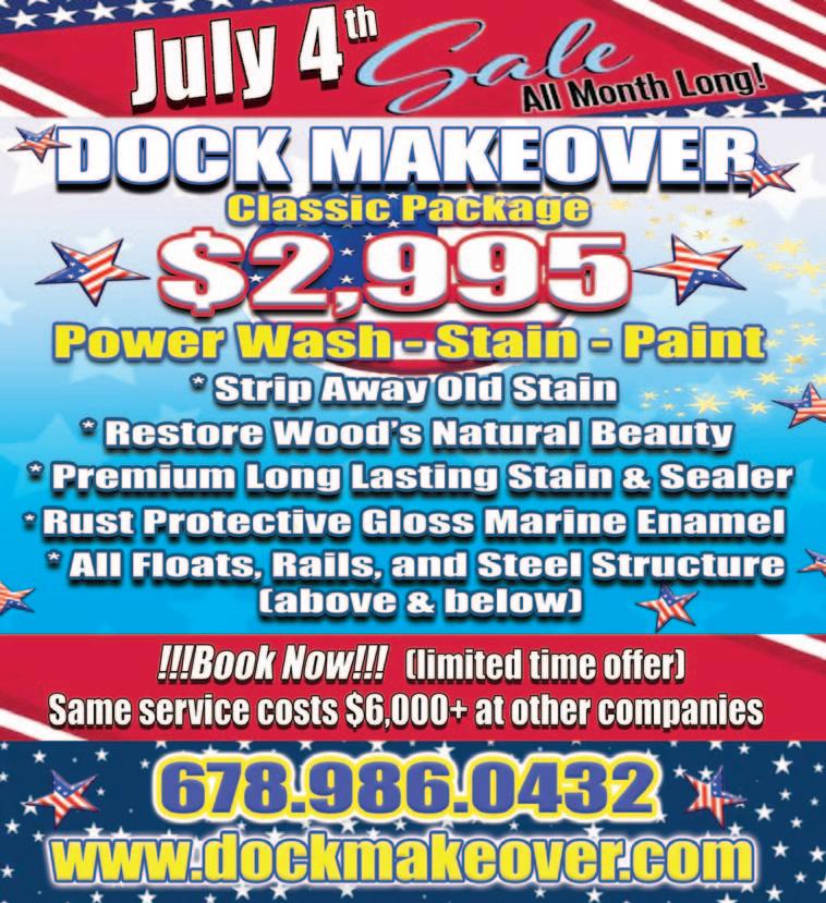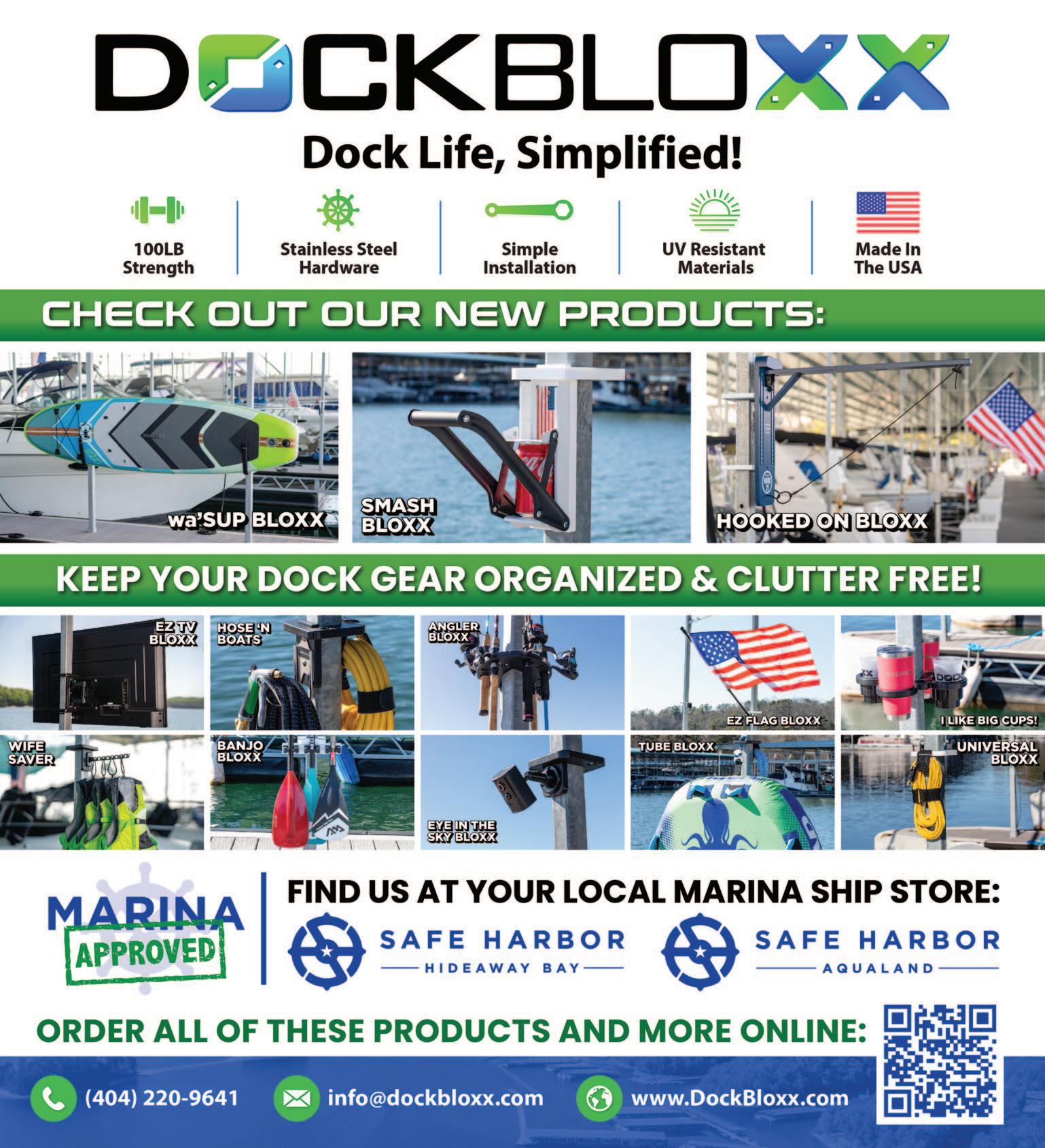 June 2023 LAKESIDE 55 Next Market - June 14, 15, 16 Lake Lanier Dwellers Lake Lanier Marina Map Lake Lanier Lakeaholic Dockside TailgatingLake Lanier Places No Sharks, No Salt, No Worries LAKE LANIER GEAR CUSTOM LOGO APPAREL & GIFTS Get your LAKE GEAR HERE! Est. 2009 www.LakeLanierGear.com • 678-662-9227 “Best BoatLift in the Industry” “Best Customer Service” www.boatlifts-floatair.com - Pleasure Boaters - Fox Sports Network To find a dealer near you, call 864-467-1806 or go online. 4G Square Tank Technology, Doesn’t Cut Corners!